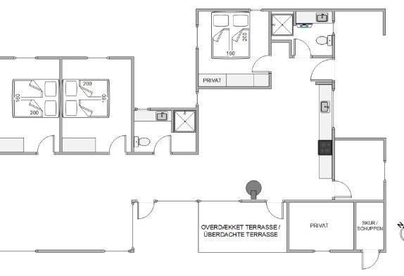 De tre soveværelser er komfortable og velindrettede, med gode senge i alle rummene. I feriehuset er der også to badeværelser, begge med bruser hvilket er ideelt hvis I kommer flere til huset.