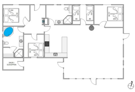 Bagefter kan I sammen spille en runde volleyball på jeres egen volleyboldbane og afgøre feriens mester. Sandet kan I efter kampen skylle af under udebruseren, og om aftenen kan I runde dagen af med en grillfest på terrassen. Udebruseren kan benyttes fra april til november.