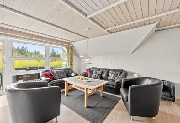 Fra stuen er der udgang til sommerhusets åbne terrasse. Her kan I nyde mange solrige timer i de behagelige havemøbler, mens de mindste kan lege på sommerhusets gyngestativ eller i sandkassen. Om aftenen kan I finde sommerhusets smarte gasgrill frem, hvor I hurtigt kan tilberede en lækker middag herpå. Hvis vejret er godt, kan I endda nyde middagen på terrassen.