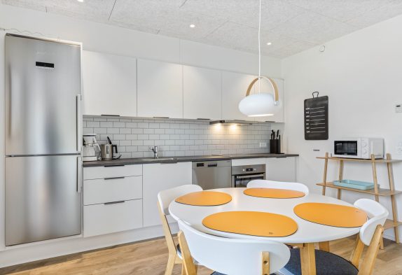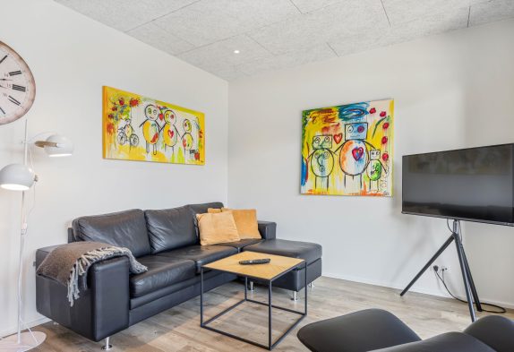 I den skønne ferielejlighed kan I nyde udsigten til den hyggelige kanal fra sofaen og spisebordet i køkkenalrummet. De store vinduer i rummene giver en skønt lysindfald og sikrer jer en lys og behagelig stemning i ferielejligheden.