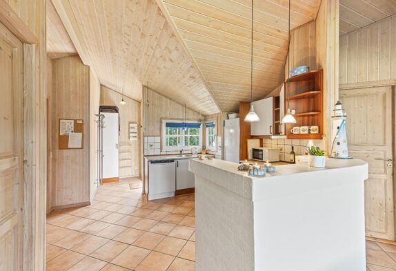 Køkkenet er i åben forbindelse med stuen, og her kan I helt sikkert fremtrylle mange lækkerier, hvad enten det er til en god brunch eller en frisk salat til grillmiddagen. Køkkenet er veludstyret med bl.a. mikroovn og opvaskemaskine.