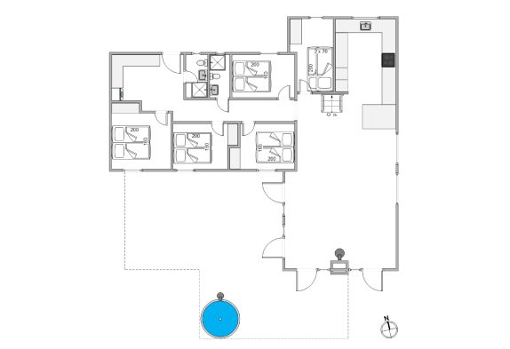 I 4 af de 5 soveværelser finder I dobbeltsenge og et soveværelse har en køjeseng. Med 2 badeværelser opstår der ikke kø om morgen, og gulvvarmen sørger for varme fødder. Derudover kan I ved behov tænde for den energibesparende varmepumpe i feriehuset.
