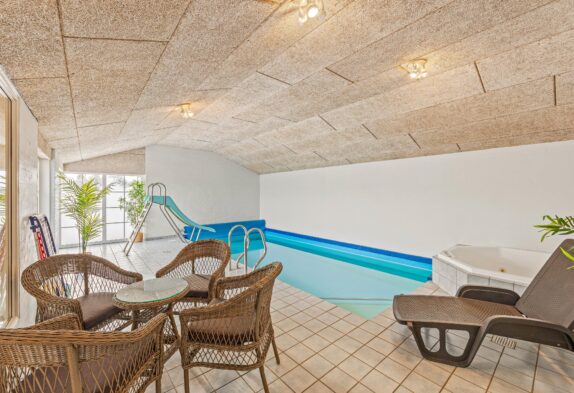 Et af sommerhusets absolutte highlights er poolrummet med 18 m2 pool, spabad og sauna. Her kan hele familien nyde hinandens selskab, hvad enten I er til sjov og leg eller afslapning og velvære.