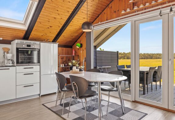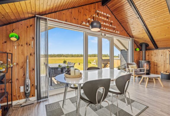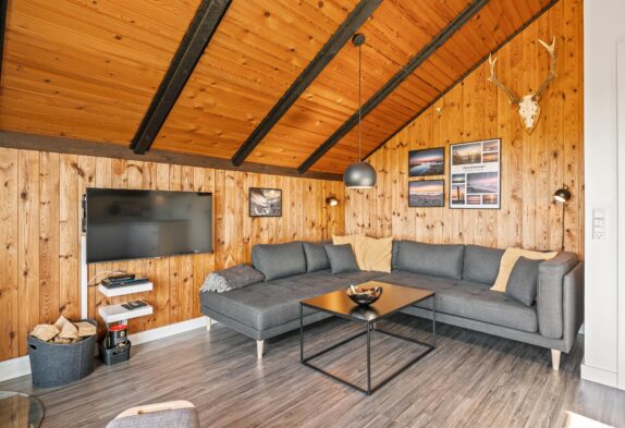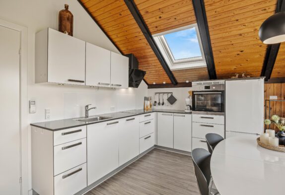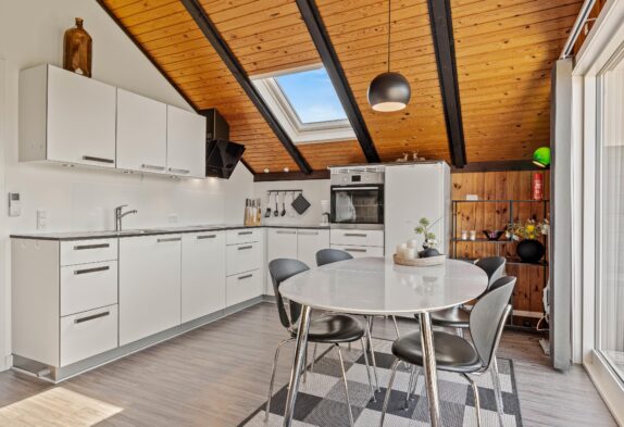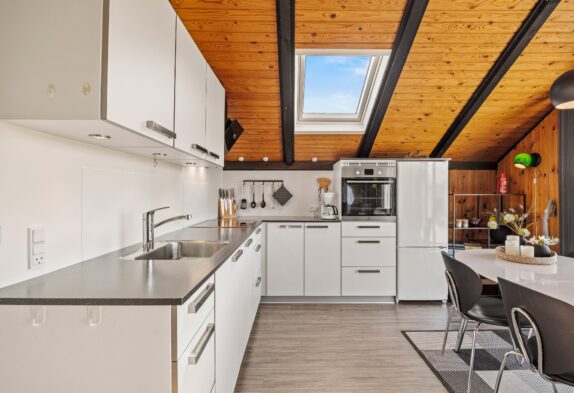 Feriehusets hjerte er alrummet, hvor køkken, spiseplads og stue ligger i åben forbindelse. Her kan I lave mad sammen, mens børnene leger ved spisebordet, så I kan tilbringe så mange gode timer sammen, som det er muligt. Brændeovnen skaber en hyggelig feriestemning med træets knitren samt dens behagelige varme, mens I slapper af på sofaen med hjemmelavede popcorn og en god film i fjernsynet. I sommerhuset er der både Chromecast og Yousee Play.