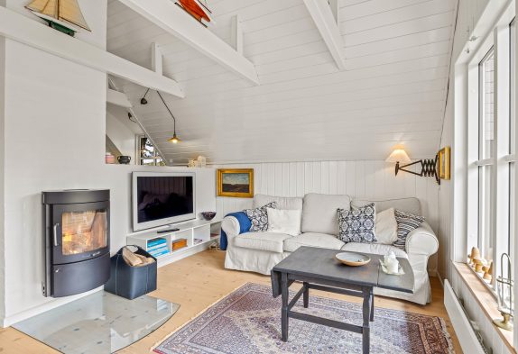 Lys og hyggelig indretning – med brændeovn