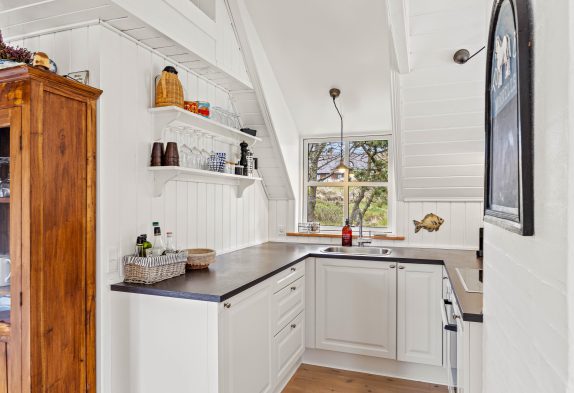 Sommerhuset er udstyret med elvarme og den hyggelige brændeovn sørger for en behagelig temperatur i sommerhusets rum. Og badeværelsets smukke strandstens gulv har indlagt gulvvarme, så I ikke kommer til at fryse fødderne hellere her.