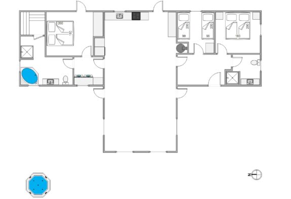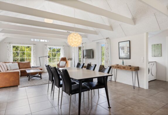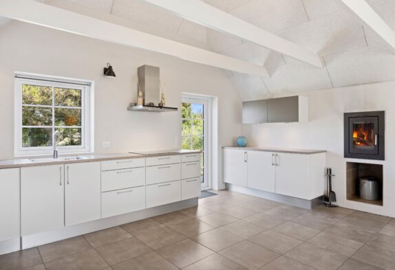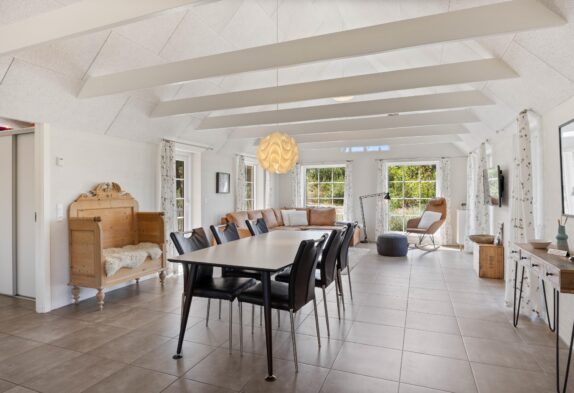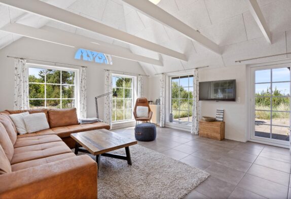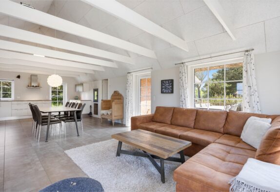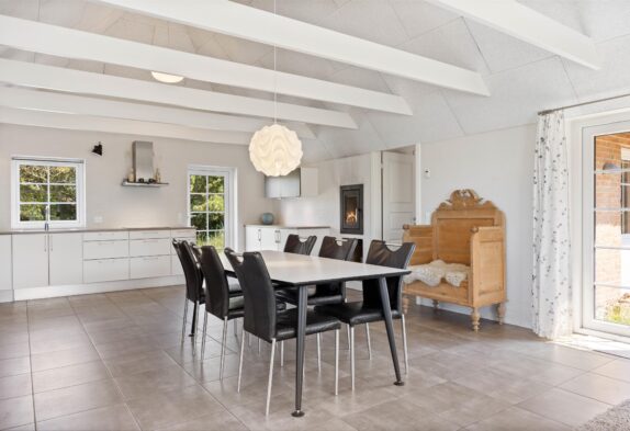 Jens Jensens Vej 46 byder jer velkommen med en lys og moderne indretning. Der er lyse loftbjælker op til kip, som giver ægte sommerhusstemning. Selve sommerhuset er fordelt på 3 soveværelser, hvoraf de 2 har dobbeltsenge. Det ene soveværelse har desuden direkte udgang til terrassen der omgiver huset. Sommerhusets hjerterum er uden tvivl det dejlige, lyse køkken hvor I også finder brændeovnen. Køkkenet er i direkte forbindelse med opholdsstuen og stuen, hvor I kan samles og hygge jer mens der laves mad eller spilles spil alt imens brændeovnen skaber ægte sommerhushygge. Sommerhuset har hele 2 badeværelser, så der ikke opstår kø om morgenen for jer ved den daglige morgenrutine. Det ene badeværelse har både sauna og spa og giver følelsen af velvære og wellness på ferien. Her vil I uden tvivl komme til at tilbringe mange dejlige feriestunder.