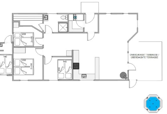 Der er også en tilhørende spa med plads til alle 6 gæster i sommerhuset. Denne spa er genstand for mange timers sjov, hygge og velvære. Børnene vil elske at plaske lidt rundt i det og efter puttetid, kan de voksne nyde roen, varmen og de beroligende boblerne, i fællesskab til uforstyrrede kvalitetstid.