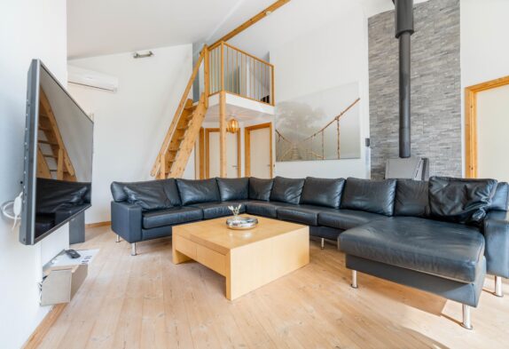Efter en lang, dejlig dag ved havet kan I slappe af i boblebadet og efterfølgende i saunaen og dermed lade batterierne op til en ny dag. I de 3 soveværelser finder I jeres velfortjente, afslappende søvn. Feriehuset råder over 2 værelser i stueetagen og ét værelse på øverste etage. Luft-til-luft-varmepumpen og den hyggelige træpille brændeovn i stuen sørger for en behagelig temperatur og energibesparende opvarmning.