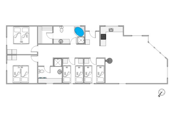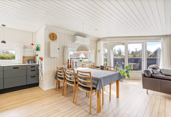 Det hyggelige og charmerende sommerhus er klassisk indrettet. Med en personlig og hjemlig stil, vil I altid føle jer godt tilpas. Heraf er der 8 sengepladser fordelt på 4 værelser, hvor jeres familie kan lade op til den næste dags aktiviteter. Med 2 dobbeltsenge og 4 enkeltsenge kan I nyde en komfortabel nat. For at fuldende jeres afslappende og rolige ferie er der installeret et indendørs spabad og sauna på det ene af badeværelserne. Her kan I nyde en behagelig varme – også fra gulvvarmen.