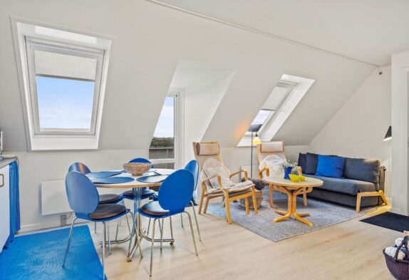 Trænger I til en skøn badeferie, hvor I på få minutter kan komme ned på stranden, men også kan lade bilen stå, når der skal købes ind? Så er denne skønne lejlighed, med dens centrale beliggenhed på Hjelmevej 15- lejlighed 21 i badebyen Henne Strand, et oplagt valg.