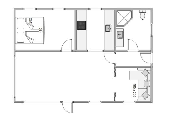 Der er både sovemulighed i det ene soveværelse med dobbeltseng eller i alrummet på sovesofaen, der kan afskærmes med et forhæng mod spisebordet. I feriehusets ene badeværelse er der god plads og dejlig gulvvarme.