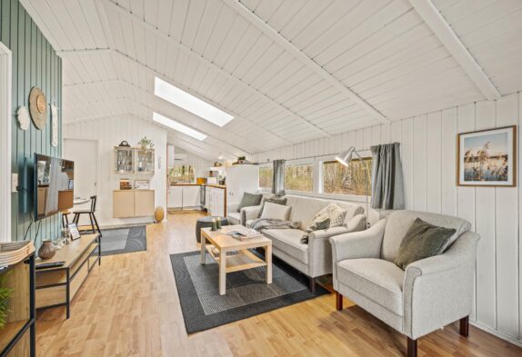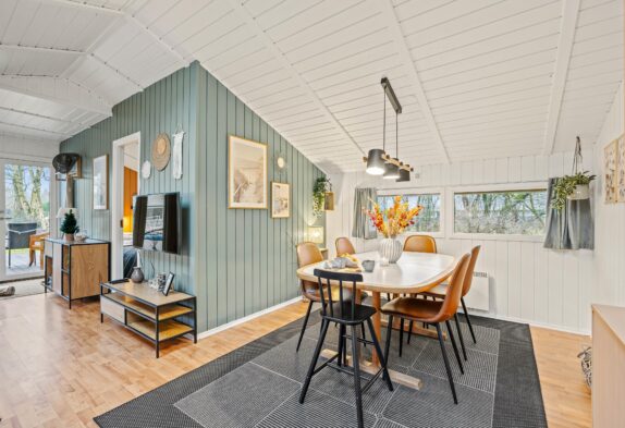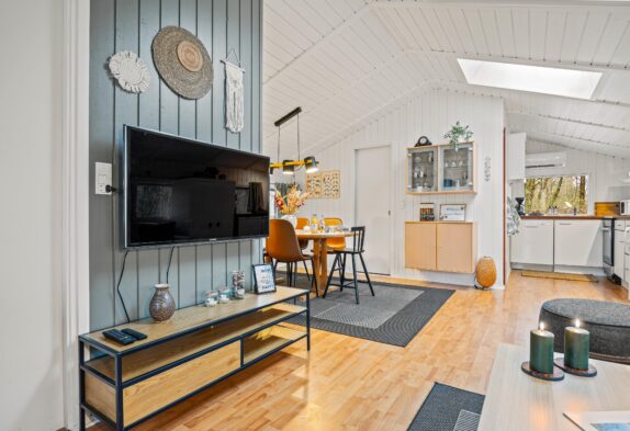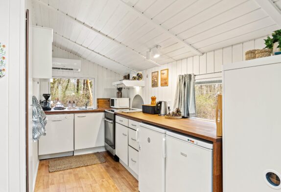I køkkenet er der opvaskemaskine, så I slipper for at klare opvasken i hånden. Køkkenet ligger i åben forbindelse med både stue og spiseområde, så I har ét stort opholdsrum, hvor I alle kan opholde jer, selvom nogle spiller kort eller lægger puslespil ved spisebordet, og andre tilbereder aftensmaden eller læser en god bog i sofaen. I kan også benytte jer af feriehusets Chromecast, så I nemt kan streame jeres favoritter direkte på fjernsynet.
