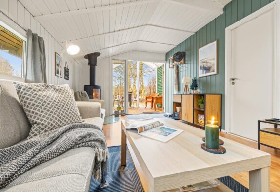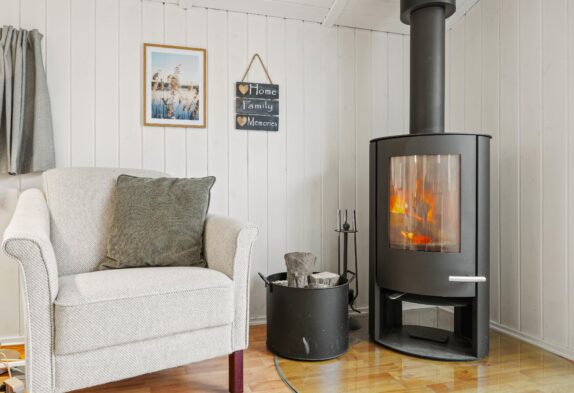 Brændeovnen i stuen skaber med sine dansende flammer den perfekte ferieatmosfære på de køligere dage. Når opvarmningen af sommerhuset skal gå hurtigt, kan I benytte jer af den energibesparende varmepumpe, som nemt og effektivt søger for god temperatur og godt indeklima.