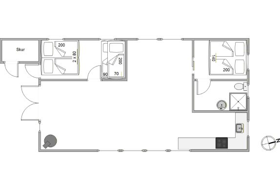 Sommerhuset, som gennemgik en stor renovering i 2023, er 64 m2 fordelt på blandt andet 2 værelser, hvoraf det ene er indrettet med dobbeltseng, og det andet med både dobbeltseng og en enkeltseng. Det er oplagt til børnefamilien, eller hvis I er et vennepar, der gerne holder ferie sammen.