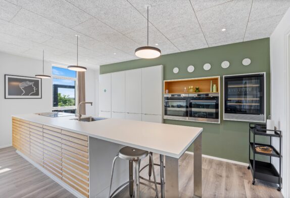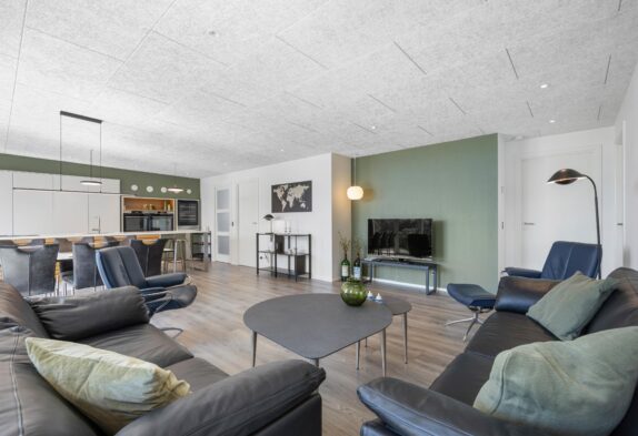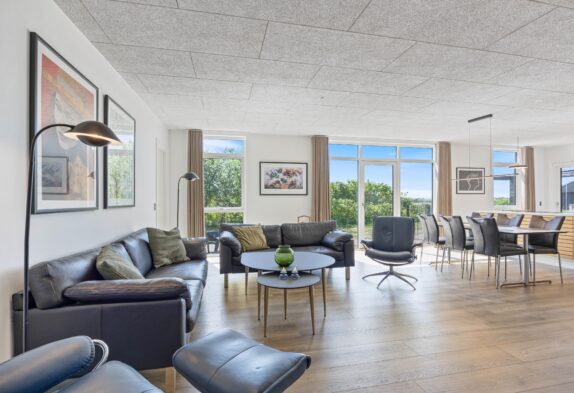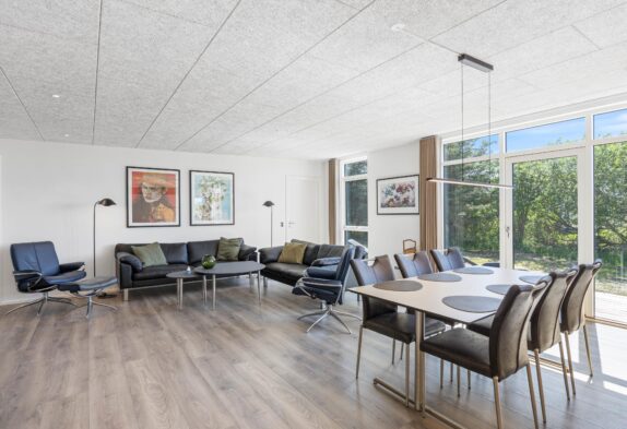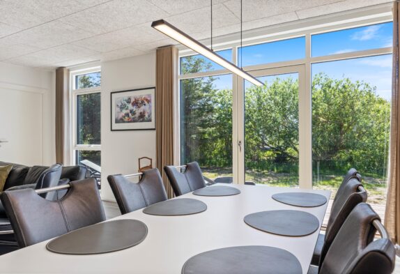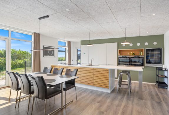 Feriehuset er opført i 2024 og byder jer med moderne møbler og stilfuld indretning velkommen. Feriehusets hjerte er opholdsstuen, som kombinerer køkken, stue og spiseplads. Køkkenet er godt veludstyret med både vinkøler og to ovne. Her kan I lave mad sammen, spille spil eller slappe af i sofaen med jeres yndlingsfilm efter en begivenhedsrig dag. Der er installeret vaskemaskine, tørretumbler og opvaskemaskine i feriehuset, så I ikke behøver at bekymre jer om de huslige pligter. Hele feriehuset er også udstyret med gulvvarme, som kører på en energibesparende luft-til-vand-varmepumpe.