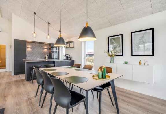 Det moderne feriehus på Bjerregårdsvej 379 er opført i 2021 og sætter rammerne for en skøn sommerhusferie ved Vesterhavet – lidt ud over det sædvanlige. Den stilfulde indretning i flotte kvalitetsmaterialer vil opfylde selv den mest kræsne feriegæsts drømme, og der er selvfølgelig også sørget for alle praktiske nødvendigheder såsom opvaskemaskine, vaskemaskine, tørretumbler og en hurtig og stabil internetforbindelse.