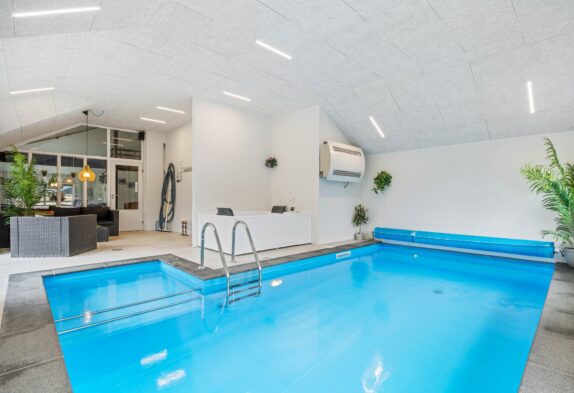 Fra opholdsstuen er der adgang til det store poolrum, som vil være et særligt højdepunkt for vandhundene iblandt jer. De af jer, der ønsker at slappe af fra hverdagens stress og jag, finder en spa og husets sauna i poolrummet. Efter en lang og spændende feriedag kan man sprede sig ud i de 4 soveværelser og på hemsen. To af soveværelserne er indrettet med hver sin dobbeltseng, mens de to andre har køjesenge. På hemsen, som ligger i forlængelse af aktivitetsrummet, er der ekstra soveplads, og den er især populær blandt børn.