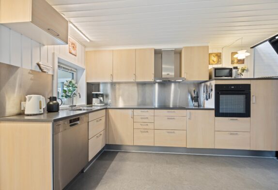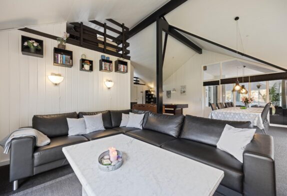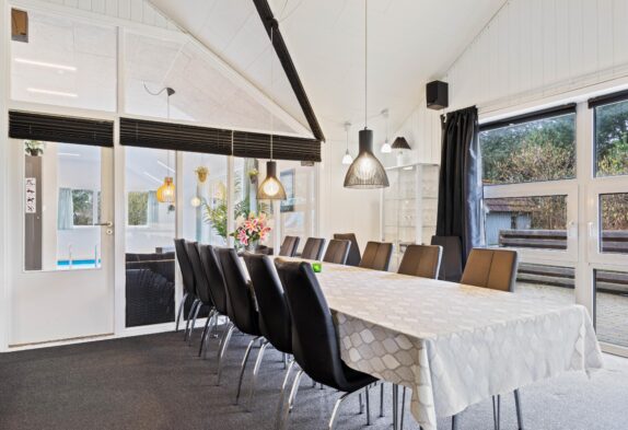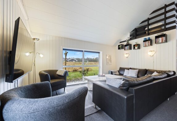 Når I træder ind i feriehuset, bliver I mødt af det store opholdsrum, som forbinder køkken, stue, spiseplads og aktivitetsrum. Her kan I lave mad sammen, planlægge jeres næste ferieaktiviteter eller se en film sammen. På regnvejrsdage byder feriehuset på masser af aktiviteter med et poolbord og et bordfodboldbord, så der er ingen chance for kedsomhed. Du kan krone billardmesteren, mens brændeovnen i baggrunden sørger for hyggelig varme og den typiske sommerhusstemning. Der er også installeret en energibesparende luft-til-luft varmepumpe, som spreder en behagelig varme i hele feriehuset.