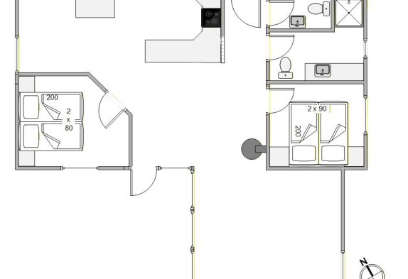 I feriehuset, der varmes op med energibesparende varmepumpe, står der også 2 gode soveværelser, badeværelse og gæstetoilet parat til jer. Nedenfor huset er der plads til cykler, barnevogn eller andet i skuret.