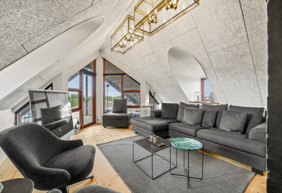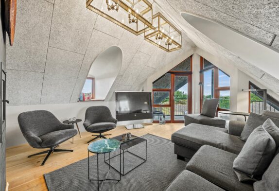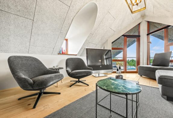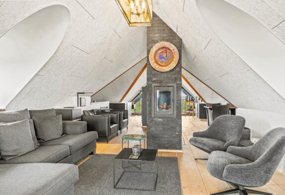 Lad jer fortrylle af dette sommerhus’ helt unikke byggestil, komfortable og charmerede indretning samt de mange terrasser, der giver jer mulighed for at nyde udelivet i fulde drag, uanset vind og vejr. Både altaner og flere terrasser er nemlig delvist overdækkede og afskærmede, og så står der naturligvis havemøbler, solsenge og grill til rådighed. Som et særligt highlight finder I også her udespaen, hvor I kan tilbringe mange hyggelige stunder sammen. Læng jer tilbage med et glas kold vin, og nyd det varme vand under åben himmel.
