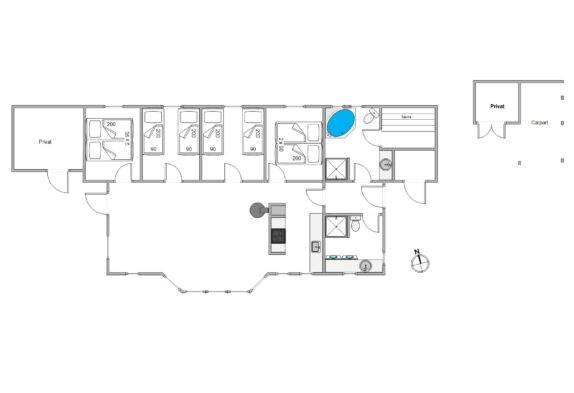 I finder også de 8 sovepladser, som er fordelt på 4 værelser. Her er 2 indrettet med store dobbeltsenge på 180 x 200 og de sidste 2 værelser er begge udstyret med 2 enkeltsenge i hver.