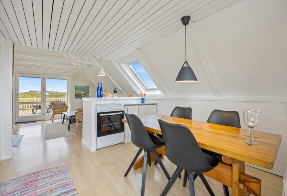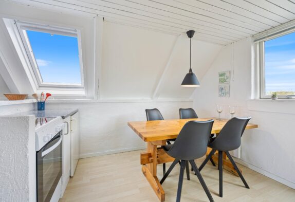 De lyse omgivelser og den enkle indretning vil helt fra start af sætte en harmonisk stemning, så I kan falde godt til i det nye feriehjem. Især sofahjørnet vil blive centrum for afslapning, og her kan I rigtig smide benene opad med en god bog og en kop kaffe.