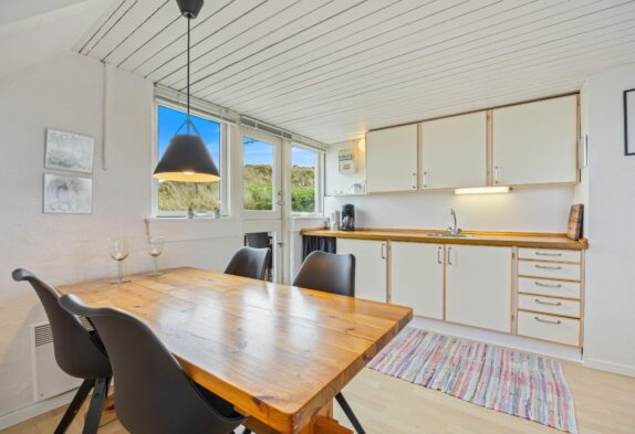 Midt i det smukke klitlandskab finder I dette hyggelige sommerhus. Her kan I holde en romantisk ferie for to i lyse og åbne omgivelser, med brændeovn og ikke mindst en fantastisk beliggenhed og udsigt ud over det fredede klitareal.