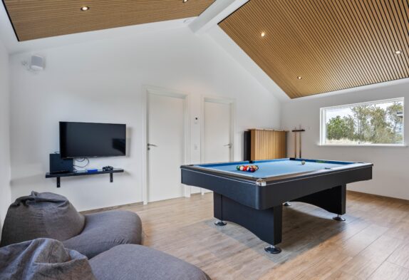 Både sommerhusets aktivitetsrum og swimmingpoolen bliver en sikker vinder hos alle feriehusets 8 gæster. Her vil I med garanti få mange timer til at gå med masser af vandlege, vandplaskeri, svømmetræning, billard og bordtennis. Et feriehus hvor I er lovet sjov og spas uanset årstiden!