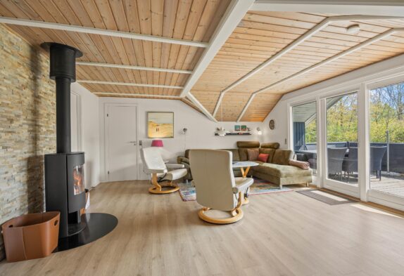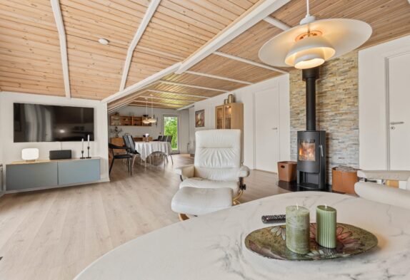 Sommerhuset opvarmes med el, men vil I skrue op for hyggen på de koldere dage, kan I benytte jer af brændeovnen, som kører på træpiller. Slå benene op, læn jer tilbage i sofaen og stream jeres yndlingsserie på sommerhusets Chromecast, mens varmen fra de knitrende flammer spreder sig og skaber en fantastisk atmosfære.
