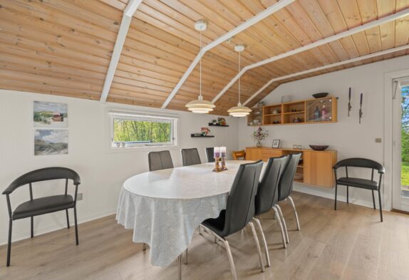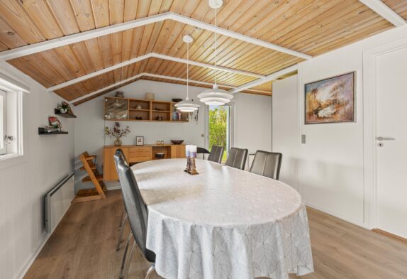 Sommerhuset, der i 2020 har gennemgået en stor renovering, fremstår lyst og indbydende. Her kan I nyde hinandens nærvær i det store opholdsrum, hvor køkkenet er i direkte forbindelse med spisestuen og stuen. For at I kan nyde jeres ferie til fulde, er her både opvaskemaskine en kombineret vaskemaskine og tørretumbler, samt en Quooker, så I hurtigt kan lave en kop te direkte fra hanen.