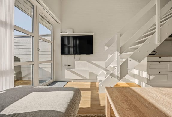 Denne hyggelige ferielejlighed er perfekt for jer, som vil nyde en romantisk parferie, eller for den lille familie med op til 6 personer. Beliggende blot 100 meter fra Vesterhavet og 200 meter fra bymidten får I her en uovertruffen placering – og så med fællespool og sauna oveni er rammerne sat for en hyggelig ferie.