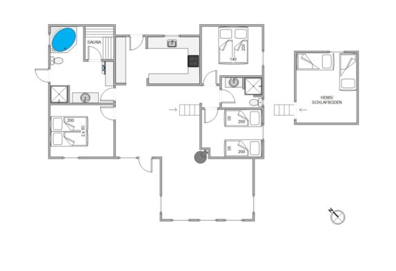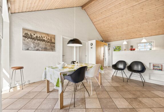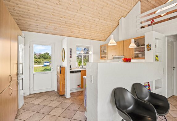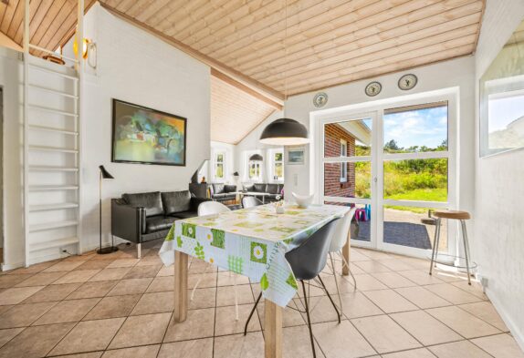 Stigen ved spisepladsen fører jer op til hemsen – et ekstra legeområde til børnene under det skrånende tag. De 6 sovepladser er fordelt på 3 skønne soveværelser – alle rummelige med komfortable senge og gode opbevaringsmuligheder.
