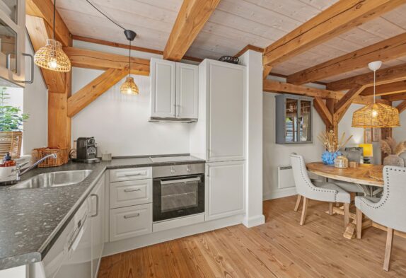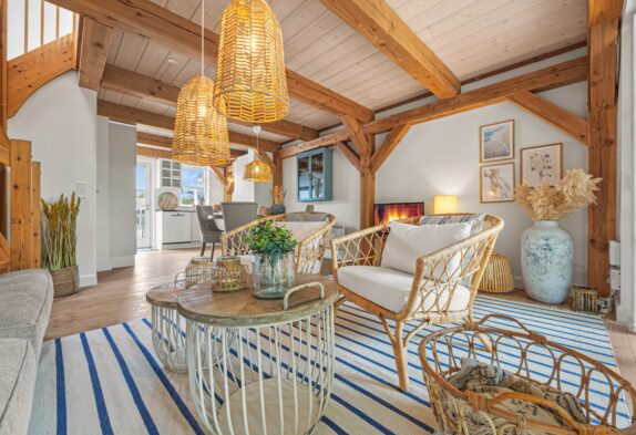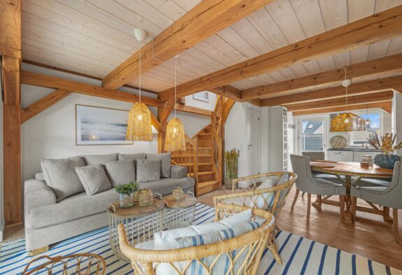 Ferielejligheden, som er opført i 2007 indeholder i alt 73 kvadratmeter, som er fordelt på to velindrettede etager. Lejligheden er renoveret i 2024 og opdateret med nyt inventar. De lyse rum og synlige bjælker samt møbler i maritim stil byder jer velkommen allerede fra første øjekast.