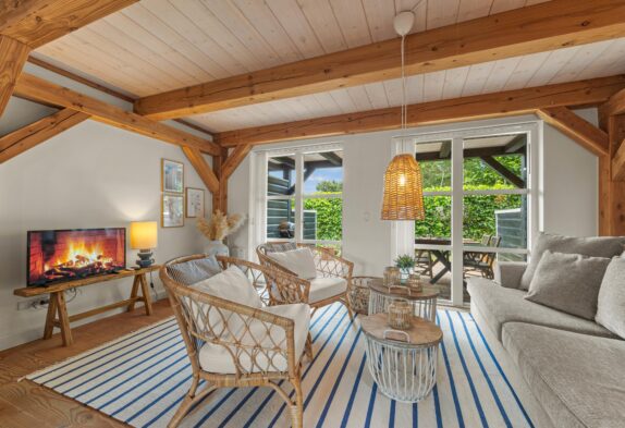 Indretningen indbyder til hygge, afslapning og socialt samvær – og ferielejligheden er et oplagt feriemål for par, veninder og aktiv ferie (cykelferie, golfferie mv.).