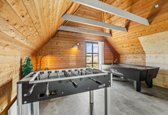 I sommerhuset på Horns Rev 37 er der noget for enhver. Til de glade vandhunde er der en 14 kvadratmeter stor pool, hvor de kan svømme, bade og lege i timevis. Til de af jer, der hellere vil slappe af, er der både en spa og sauna, som I kan sætte jer til rette i og bare nyde livet, og har man lyst til en hyggelig feriedyst, er der både airhockey og bordfodbold i aktivitetsrummet.
