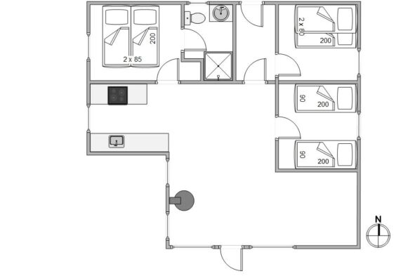 I dette 2+ stjernede sommerhus kan I holde en afslappende ferie med familien eller vennerne. Sommerhusets hjerte er det åbne spise- og stueområde, hvor I kan samles til hygge og fællesskab.