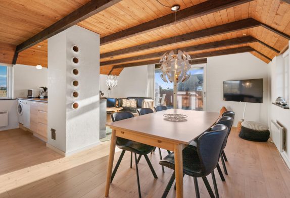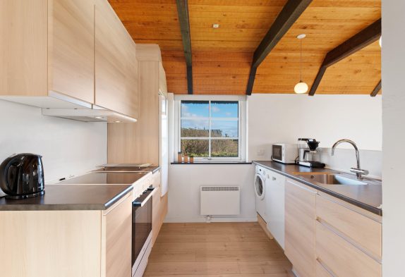 I dette charmerende feriehus i Klegod kan familien få sig en skøn ferie, midt i den smukke natur og tæt på Vesterhavet. Huset har praktiske og rengøringsvenlige gulve og overflader, perfekt til familien med børn og hund.