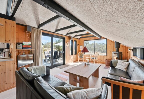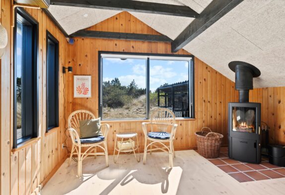 Alrummet byder desuden på en brændeovn, der med sine knitrende flammer fuldender den hyggelige feriestemning og spreder varme. Derudover har I en energivenlig luft-til-luft varmepumpe, der sørger for en behagelig temperaturer og indeklima i feriehuset hele året rundt.