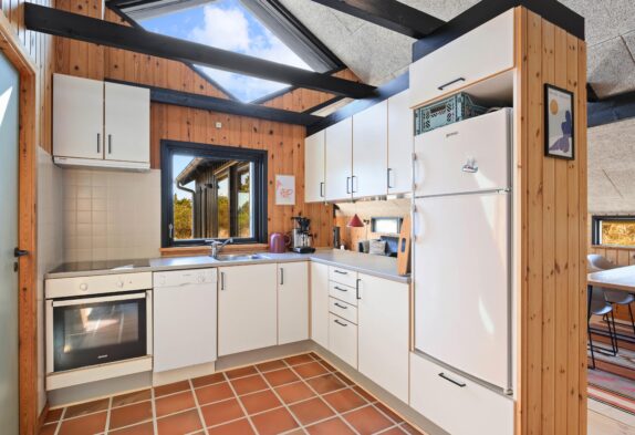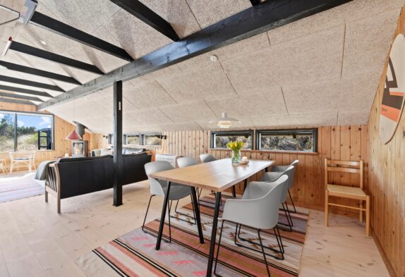 Alrummet udgør sommerhusets hjerte, og her er der lagt op til mange hyggelige stunder i løbet af jeres ferie. Her kan I være sammen om madlavningen, sjove spil og gode film, og med den åbne forbindelse mellem køkken, spiseplads og stue kan I også nyde hinandens selskab, selvom I laver forskellige ting.
