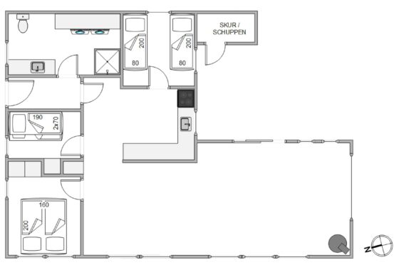 På sommerhusets 80 kvadratmeter venter jer desuden 3 gode soveværelser, der er indrettet med henholdsvis 1 dobbeltseng, 2 enkeltsenge og 1 etageseng. Her kan I søge mod, når I efterhånden har opbrugt al dagens energi, så I kan få samlet ny energi til de kommende feriedage.