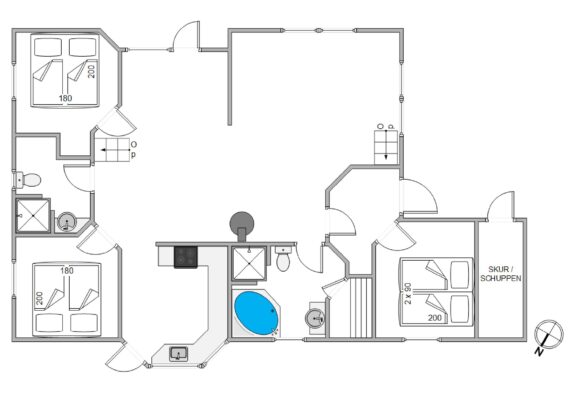Feriehuset indeholder 2 gode badeværelser, som begge har gulvvarme, så her skal I ikke bekymre jer om kolde fødder. På det ene af badeværelserne finder i ydermere et spabad, som tilføjer lidt ekstra god feriestemning.
