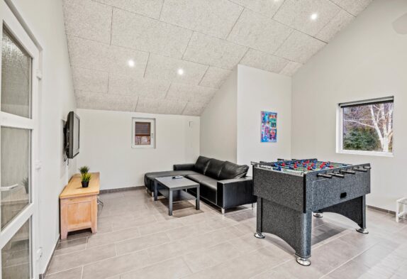 I sommerhusets anden ende finder I et aktivitetsrum, der er ideelt til både store og små. Her er der mulighed for at spille bordfodbold eller se tv, og der er en hems, som særligt børnene og unge mennesker vil sætte pris på som deres eget lille tilflugtssted.