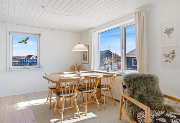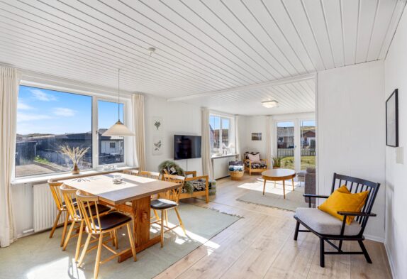 Vesterhavsvej 10 er beliggende i Hvide Sande, og der er derfor kun 400 meter til nærmeste indkøb, så I nemt kan handle ind til feriens måltider. Hvide Sande byder på gode fiskerestauranter og masser af aktiviteter – fra vandsport på Ringkøbing Fjord til hyggelige butikker.