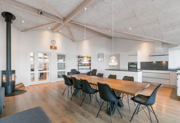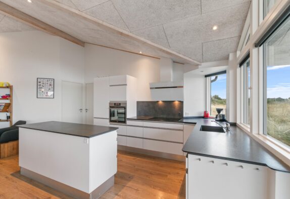 De fire soveværelser er fine og sommerhuset råder over hele tre moderne og lækre badeværelser og for de, der elsker at lave mad, står det veludstyrede køkken klar til brug, og det er naturligvis med opvaskemaskine og en separat fryser på 90 liter.