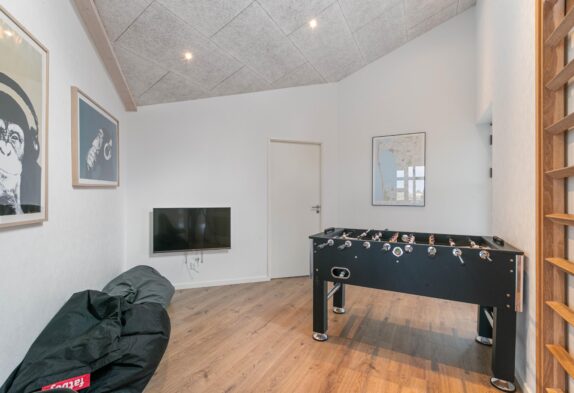 I husets aktivitetsrum er der et fodbold-bord og et stort fladskærms-TV, ideelt hvis man har medbragt sin spillekonsol hjemmefra. På begge af husets fladskærme kan du tilslutte spillekonsol eller andre ting via HDMI kablet.