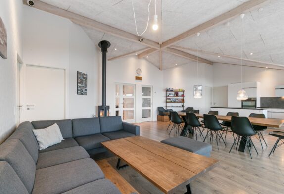 For totale afslapningsmuligheder kan I nyde den indbyggede sauna samt et tømmespa, som er perfekt til at løsne op for spændinger efter en dag med aktiviteter. Om aftenen kan I samles omkring brændeovnen og nyde varmen og hyggen.