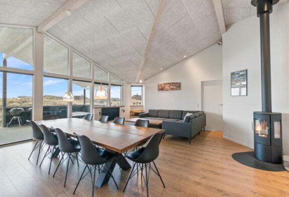 Dette rummelige feriehus ligger på en skøn 4000 m2 stor klitgrund bare 500 m fra stranden og Vesterhavet. Feriehuset byder på god plads til op til 8 personer, der her kan forkæle sig selv og hinanden med aktivitetsrum, spa, sauna samt en flot udsigt over det smukke klitlandskab mod sydvest. Huset er opført i gode materialer og det indeholder alle moderne bekvemmeligheder, man kan ønske sig – samt selvfølgelig den knitrende brændeovn, der sørger for den helt rigtige feriestemning.