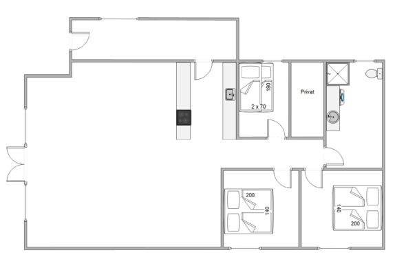 Sommerhuset har 3 soverum – 2 med dobbeltsenge og ét med en køjeseng, perfekt til børnene. På sommerhusets badeværelse finder I en vaskemaskine, så der er mulighed for at få vasket tøjet under jeres ferie.