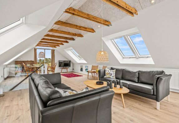 Den store naturgrund på 1160 m2 lige ved havet giver jer masser af plads til sjov og afslapning udenfor, så snart vejret er til det, og fra stuen i tagetagen kan I nyde en betagende havudsigt. En frisk havbrise og spektakulære solnedgange i smukke pastelfarver er inkluderet – I finder dem ikke smukkere end på denne egn.